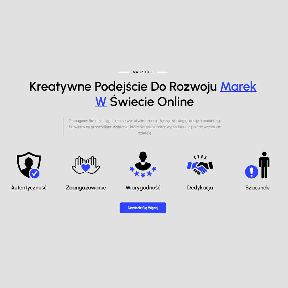 Profesjonalne podejście i dbałość o szczegóły. Projekt był dobrze przemyślany i dopasowany do naszej marki.